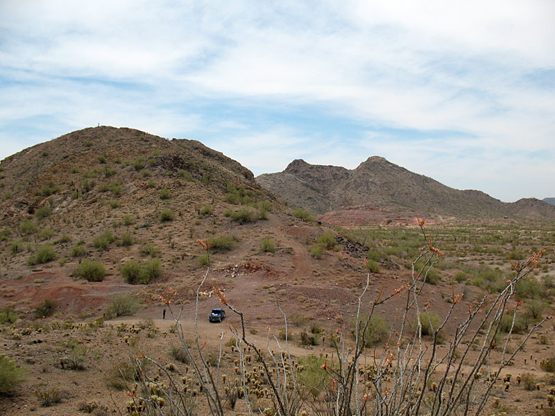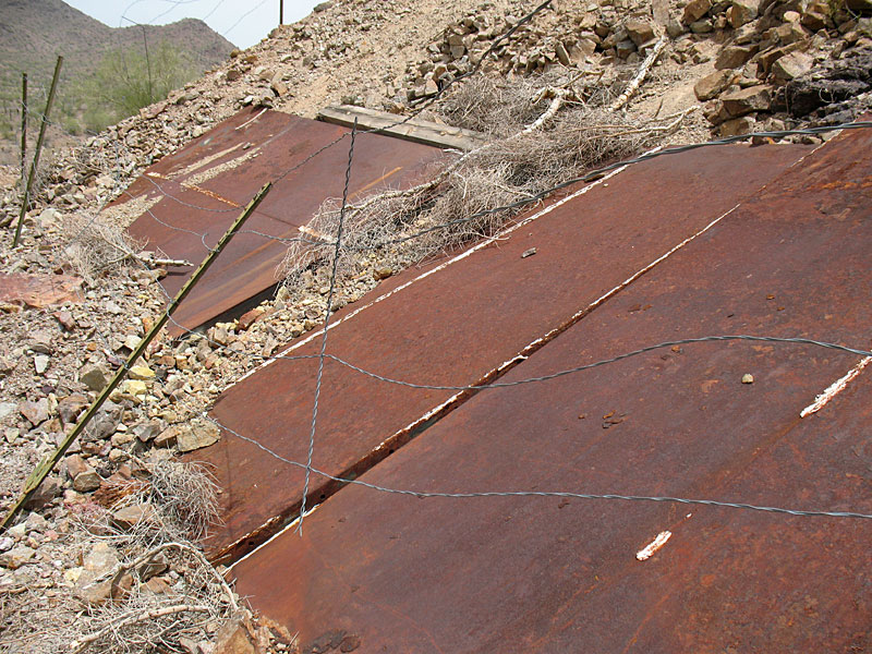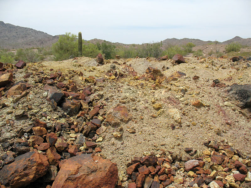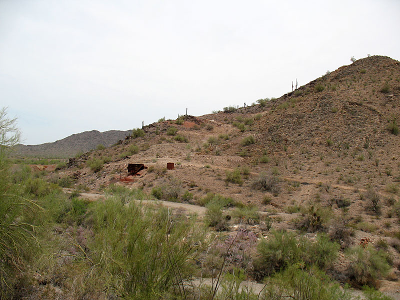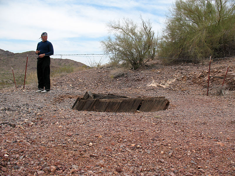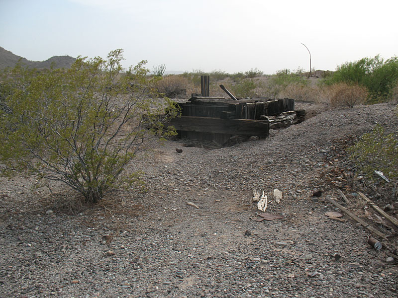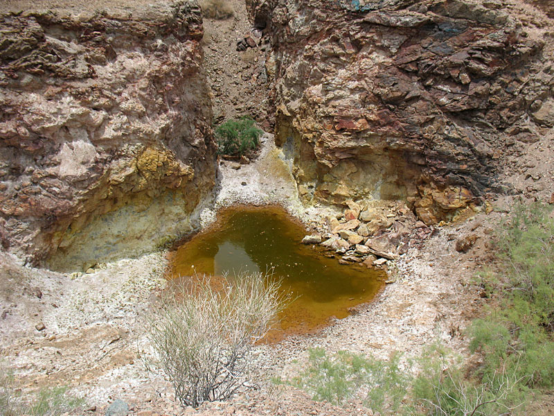 Not too far from these was a massive open pit operation. It was filled with left overs from cyanide operations and other chemicals. This whole area is fenced off but the fencing is VERY old and mostly broken. Avoid this location at 33.68406 N 113.58248 w