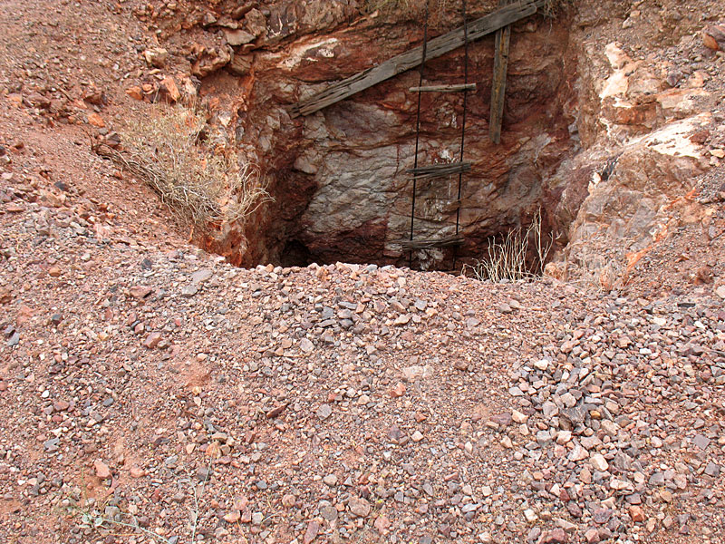 Half way between Gold Eagle and Bonanza is a well preserved shaft. No tailings either. This tends to support the idea that there is a long shaft between all these mines.